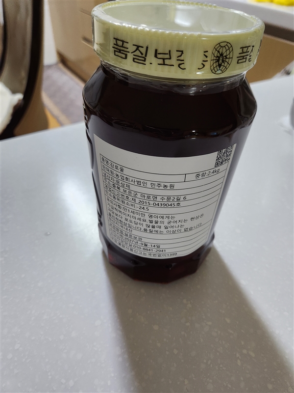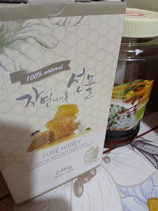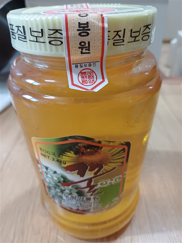| 1. 포장단위별 용량(중량), 수량, 크기 | 로얄제리사양꿀 1kg*1병,헛개나무꿀 1kg*1병,아카시아꿀 2.4kg*1병,밤꿀 2.4kg*1병,감로꿀 2.4kg*1병,벚꽃꿀 2.4kg*1병 |