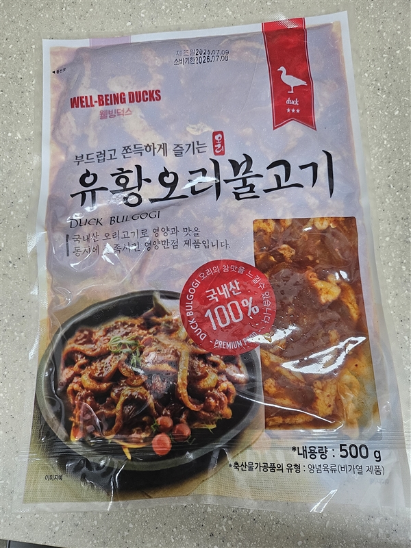 | 1-3. 제조연월일, 유통기한 또는 품질유지기한 | 오리불고기:제조일로부터(냉동) 12개월/ 전면 상단표시,오리로스:제조일로부터 10일/제조일 별도표시 |
