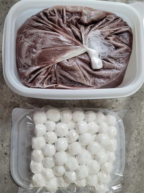 | 1-4. 포장단위별 용량(중량), 수량 | 진한팥물 900ml 1팩,새알 200g |