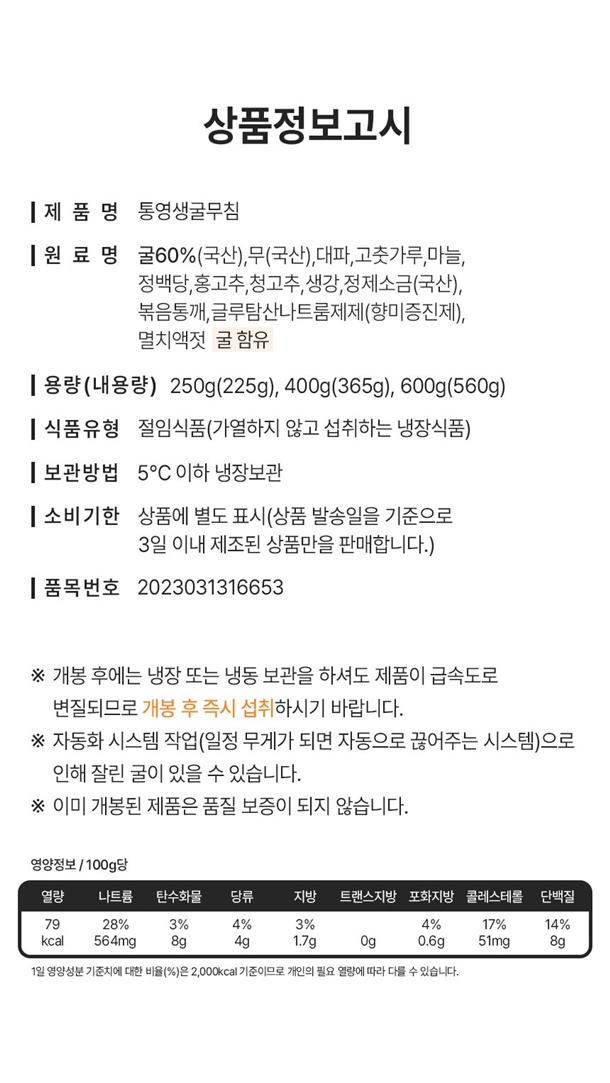 | 1. 식품위생법에 따른 표시사항 | 본 제품은 소비자 공정거래 위원회 고시 소비자 분쟁 해결기준에 의거 교환 또는 환불 받으실 수 있습니다. 부정·불량식품 신고는 국번없이 1399 |