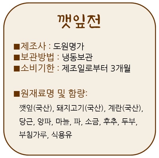 | 1. 포장단위별 용량(중량), 수량, 크기 | ■ 모듬전 3종세트(동그랑땡,동태전,꼬지전) 총 750g ■ 모듬전 5종세트 (동그랑땡,새우전,동태전,꼬지전,깻잎전) 총 1250g |