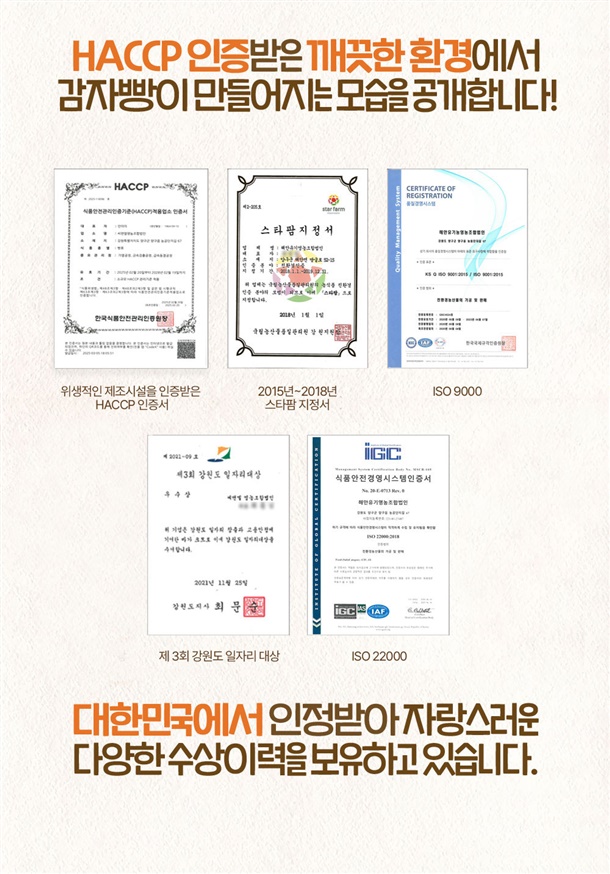 | 식품위생법에 따른 표시사항 | 본 제품은 소비자 공정거래 위원회 고시 소비자 분쟁 해결기준에 의거 교환 또는 환불 받으실 수 있습니다. 부정·불량식품 신고는 국번없이 1399 |