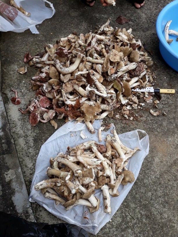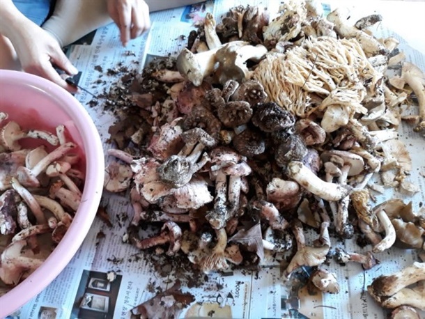 온 산을 헤메며 채취한 자연산버섯은