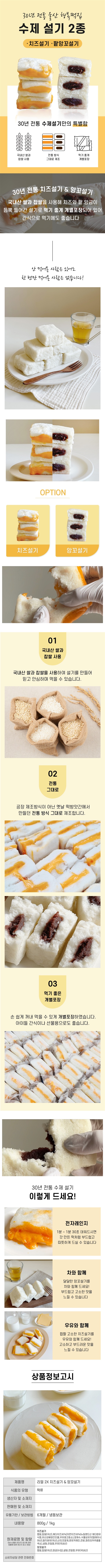 | 1-5. 원재료명 및 함량(농수산물의 원산지 표시에 관한 법률에 따른 원산지 표시 포함) | *치즈설기 맵쌀(국산), 찹쌀(국산), 체다치즈30%[자연치즈55%{뉴질랜드산체다원유식염,유산균배양건조물,우유응고효소},정제수,식물성유지(말레이시아산),탈지분유(국산),산도조절제,렌넷카제인,전분,파프리카추출색소], 설탕, 천일염, 우유(국내산) *앙꼬설기 맵쌀(국산),찹쌀(국산),앙금(수입),설탕,천일염,우유(국내산) |