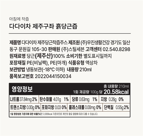 | 포장단위별 용량(중량), 수량 | 1번) 병타입 185ml*7병,2번) 파우치타입 210ml*7팩 |