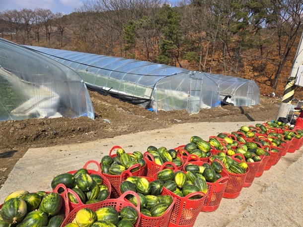 메론으로 유명한 고령에서 수확하는