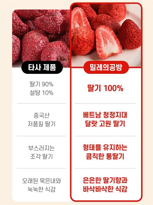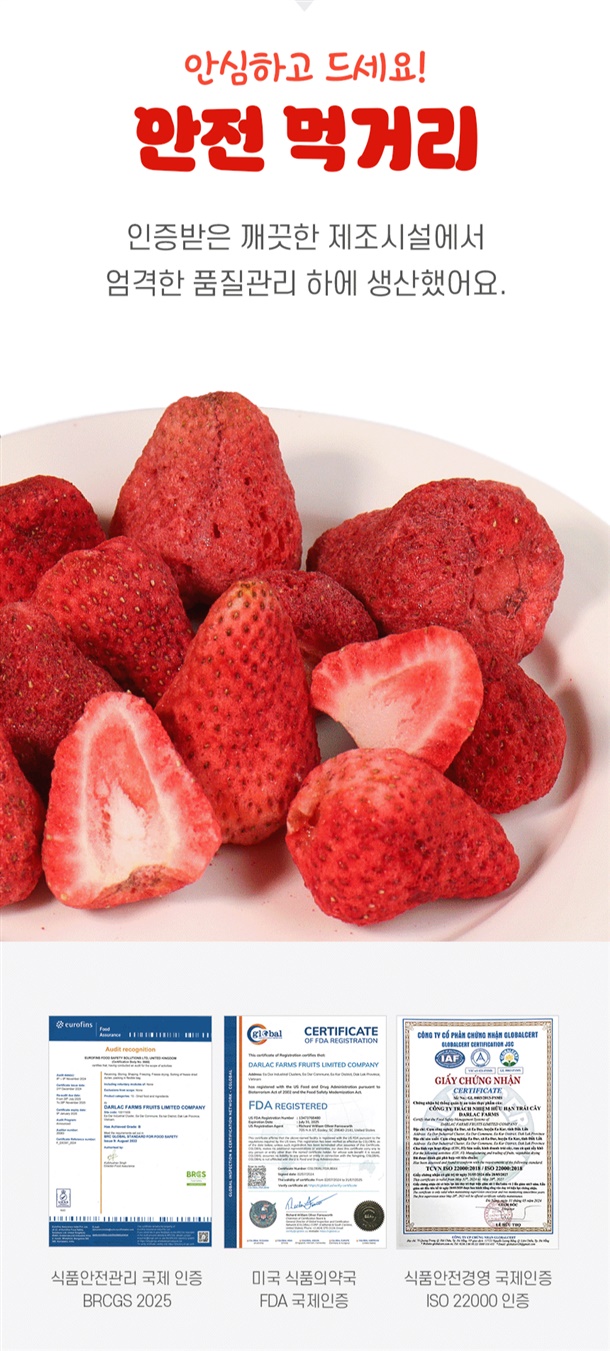 | 1-5. 원재료명 및 함량(농수산물의 원산지 표시에 관한 법률에 따른 원산지 표시 포함) | 딸기(베트남산)100% |