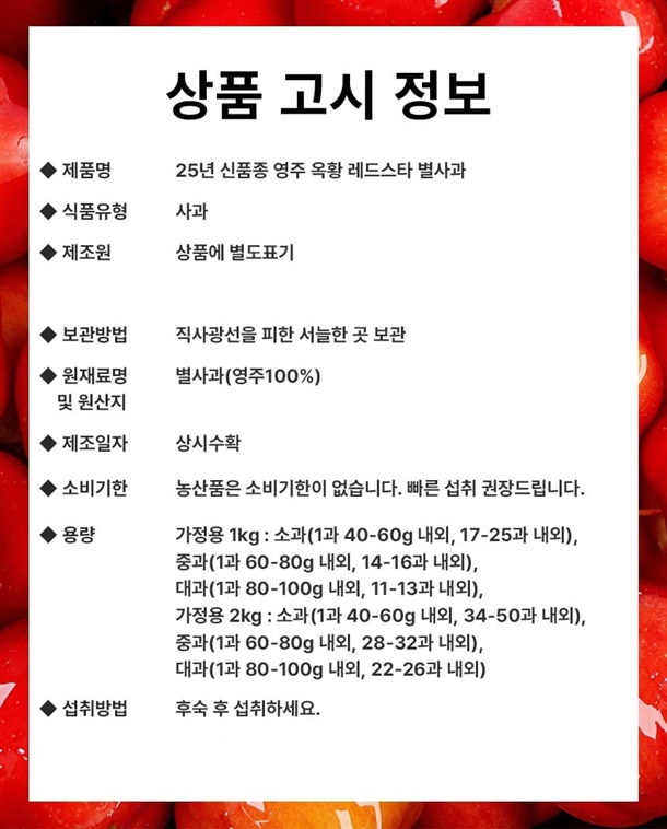 | 3. 농수산물의 원산지 표시에 관한 법률에 따른 원산지 | 국내산(영주) |