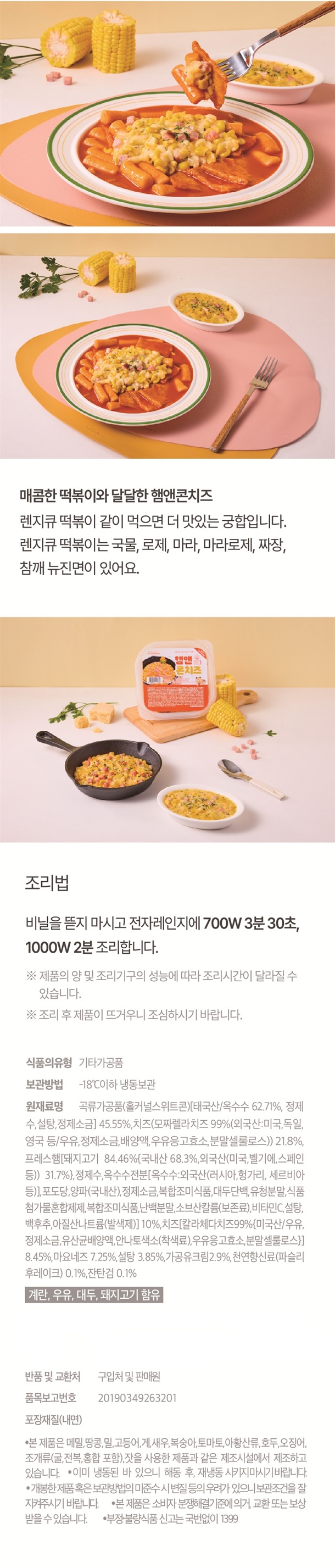 | 1-4. 포장단위별 용량(중량), 수량 | 햄앤콘치즈 200g 1봉 |