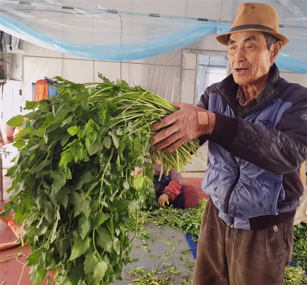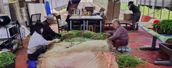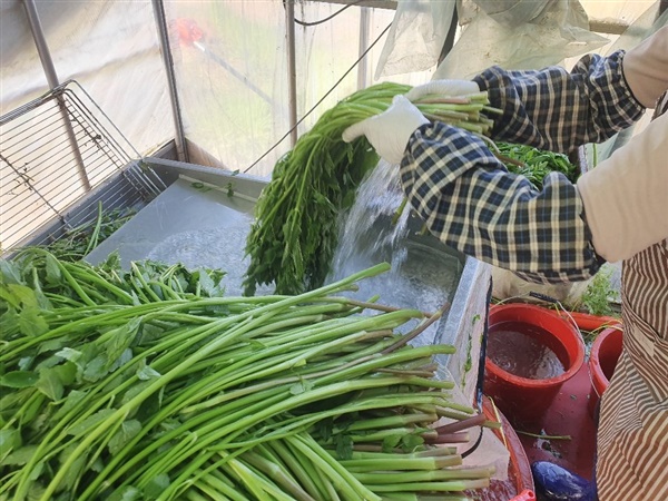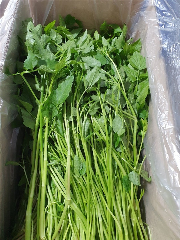 미나리 농장에서 당일 수확한 미나리가 출하되어
