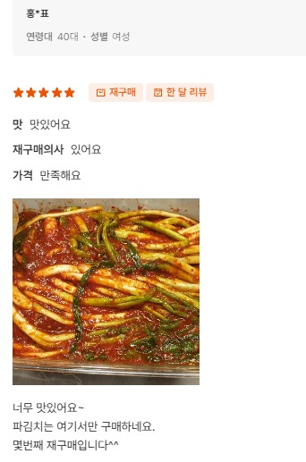 | 1-1. 식품의 유형 | 김치(비살균제품) |