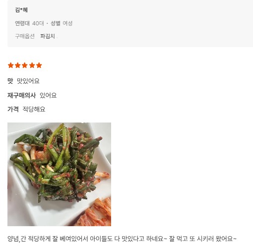 한 올 한 올 정성껏 버무린 김치입니다.