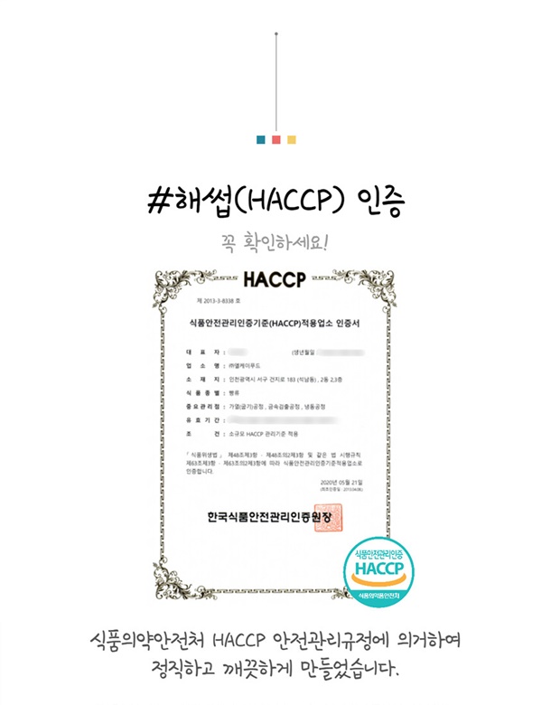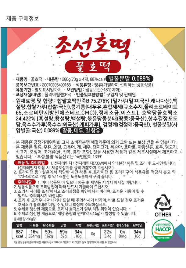 | 1. 식품위생법에 따른 표시사항 | 본 제품은 소비자 공정거래 위원회 고시 소비자 분쟁 해결기준에 의거 교환 또는 환불 받으실 수 있습니다. 부정·불량식품 신고는 국번없이 1399 |