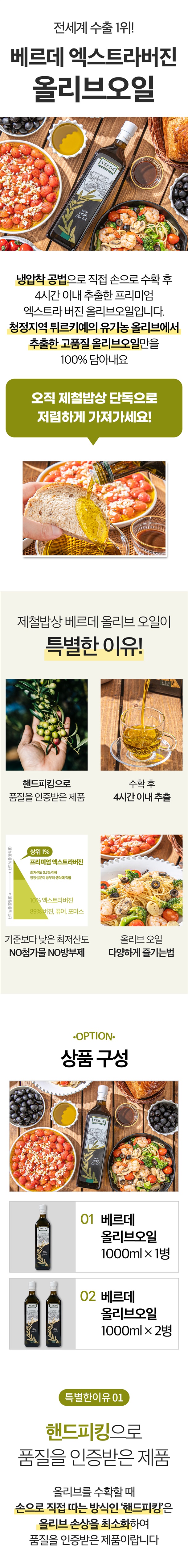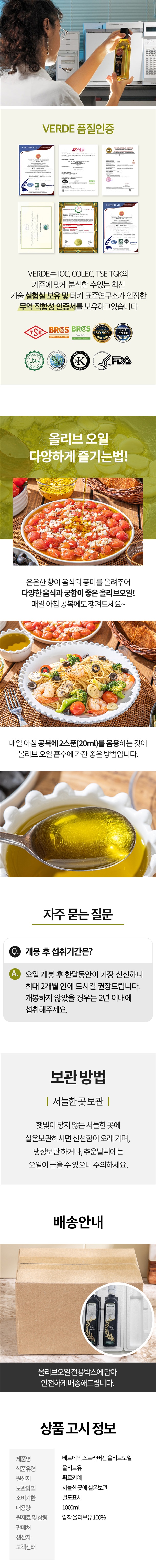 | 1-5. 원재료명 및 함량(농수산물의 원산지 표시에 관한 법률에 따른 원산지 표시 포함) | 압착올리브유100% |