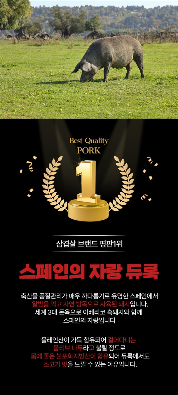 | 1-5. 원재료명 및 함량(농수산물의 원산지 표시에 관한 법률에 따른 원산지 표시 포함) | 스페인/삼겹살100% |