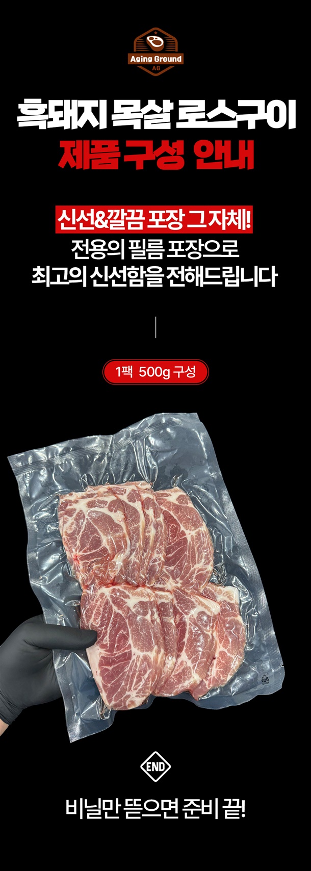 | 1-4. 포장단위별 용량(중량), 수량 | 듀록 흑돼지 목살 로스구이 500g/1팩 |