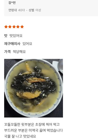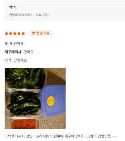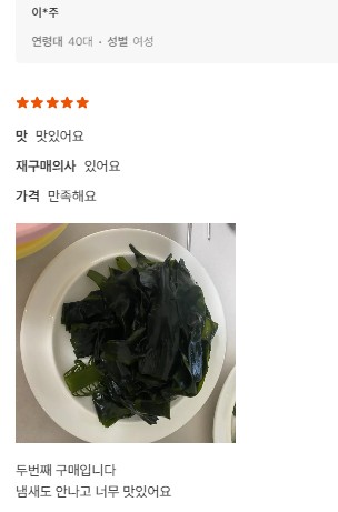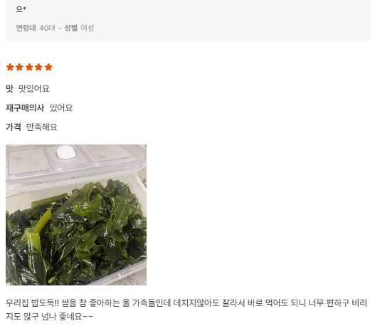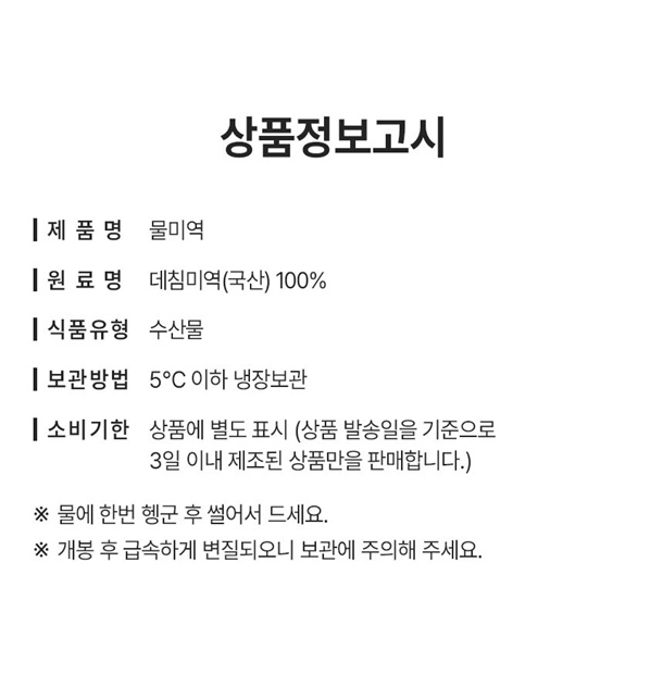 | 1. 포장단위별 용량(중량), 수량, 크기 | 물미역 400g내외 2팩 + 초고추장 2팩 |