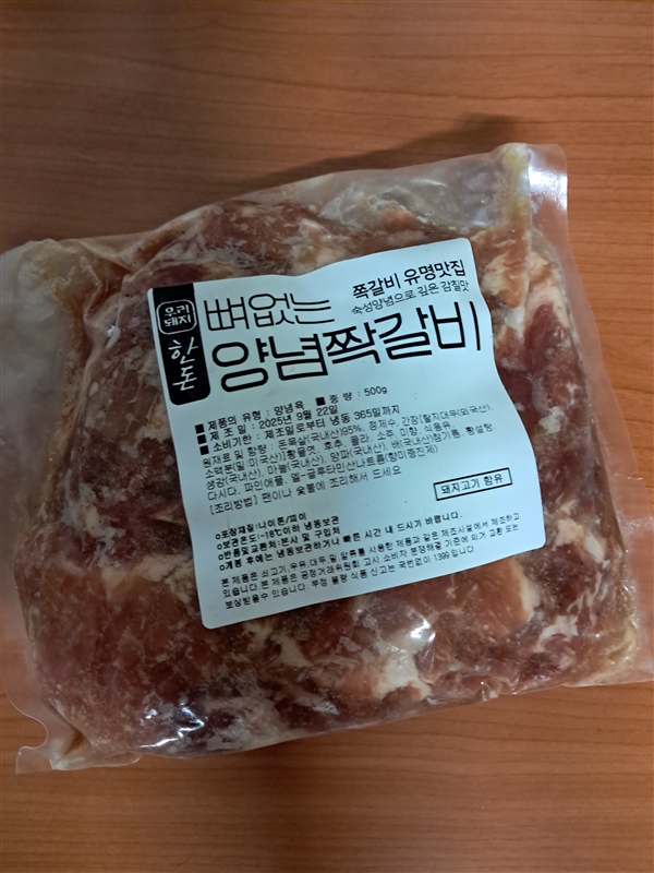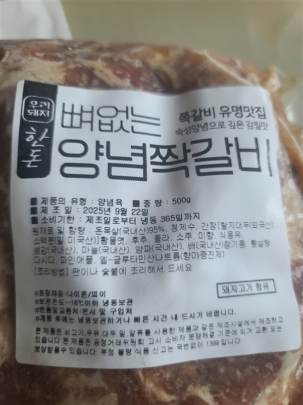 | 포장단위별 용량(중량), 수량 | 뼈없는 양념쫙갈비 1팩(500g) |