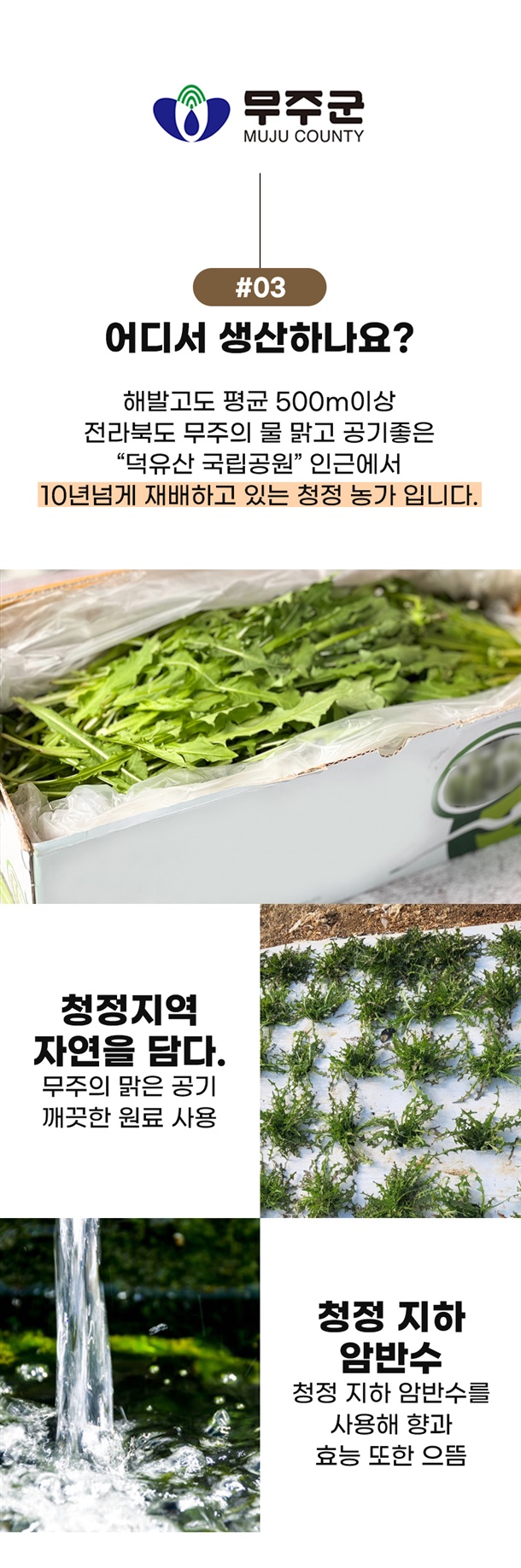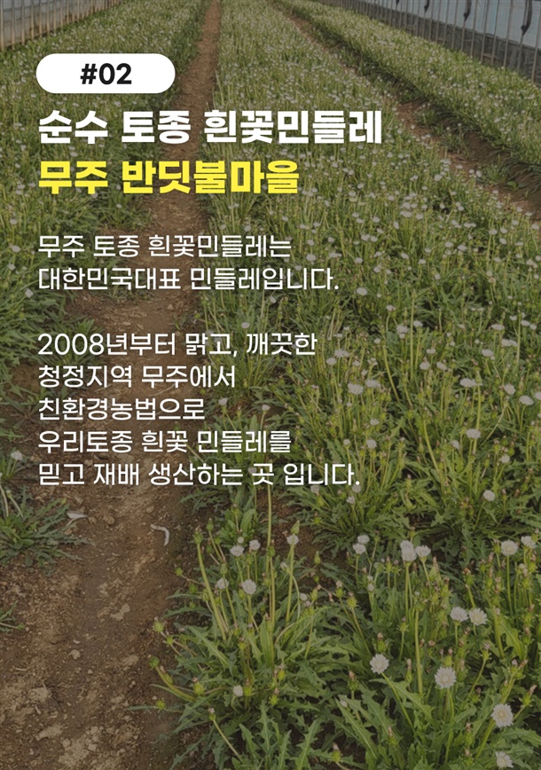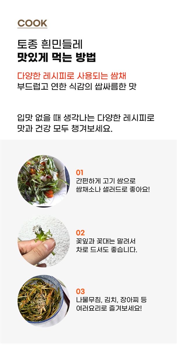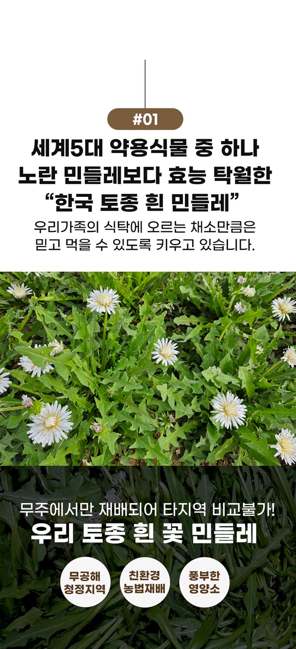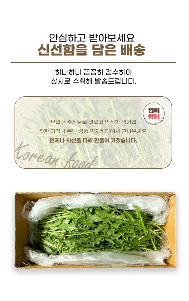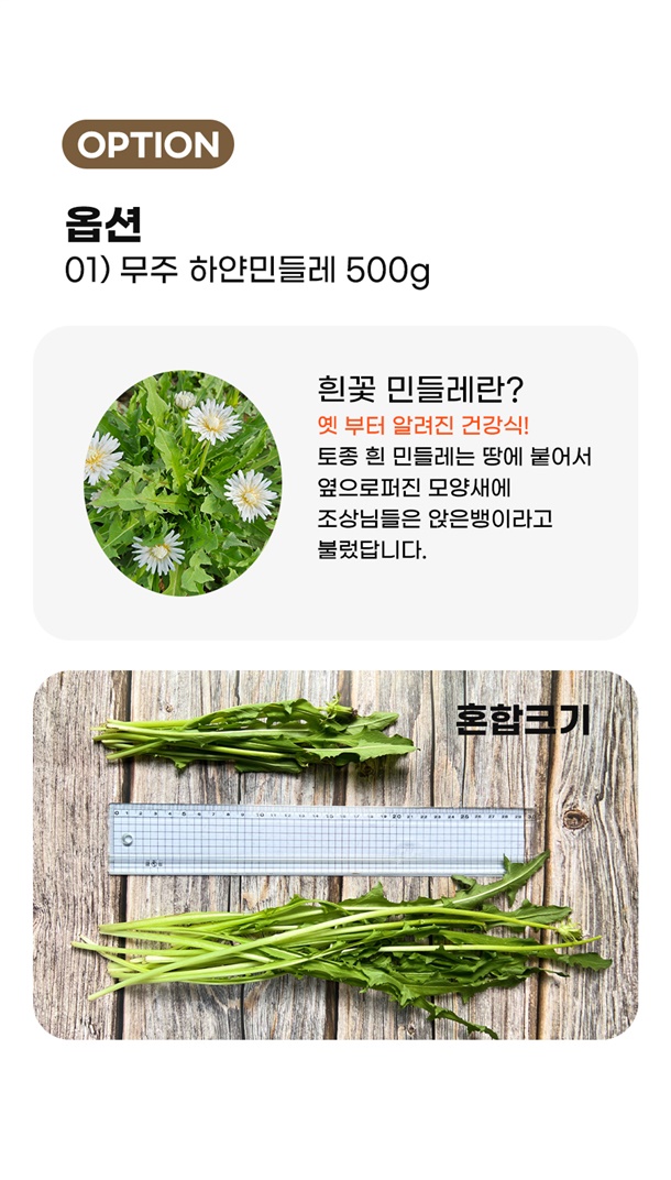 | 1. 포장단위별 용량(중량), 수량, 크기 | 무주 흰꽃민들레 쌈채 500g |