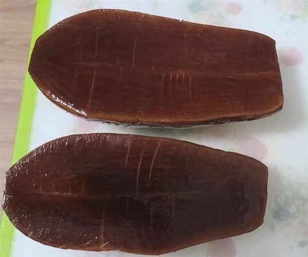 | 1-5. 원재료명 및 함량(농수산물의 원산지 표시에 관한 법률에 따른 원산지 표시 포함) | 절임무75%(국내산),천일염(호주산),정제수,정제소금(호주산),혼합간장,카라멜액,소브산칼륨(보존료),사카린나트륨(감미료),식용색소적색40호(착색료),식용색소황색제5호(착색료) |