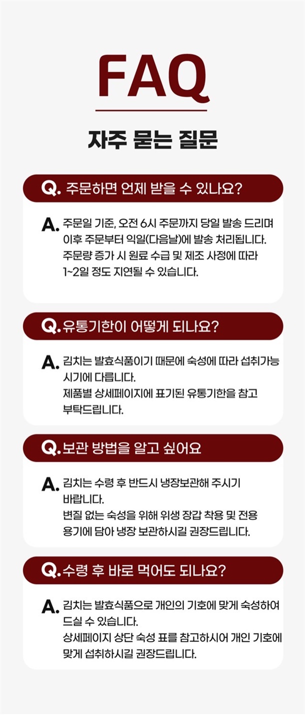만들어진 김치라 맛이 정말 깔끔해요!!
