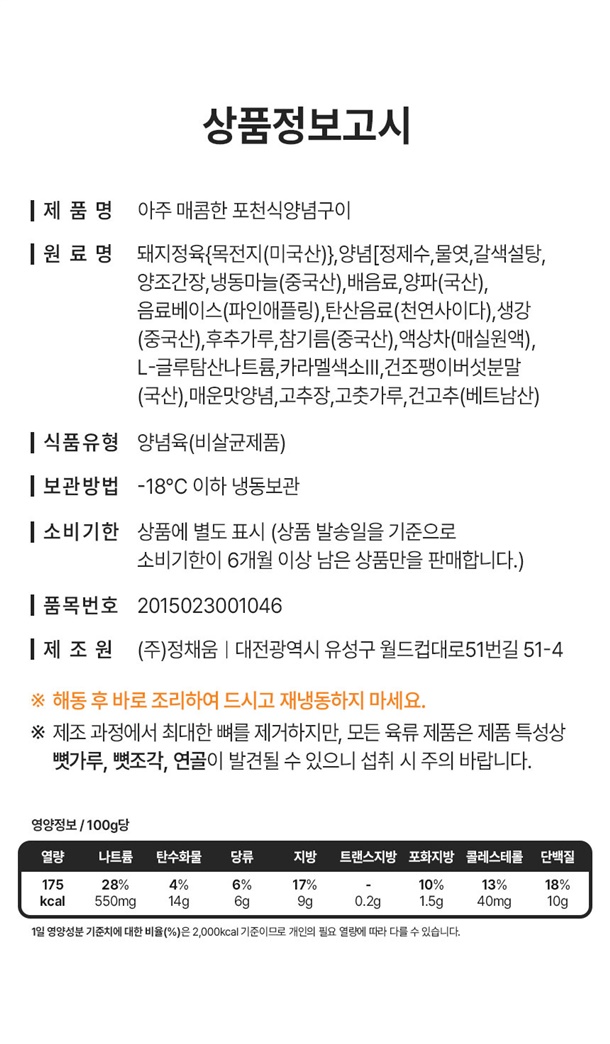 | 식품의 유형 | 양념육(비살균제품) |