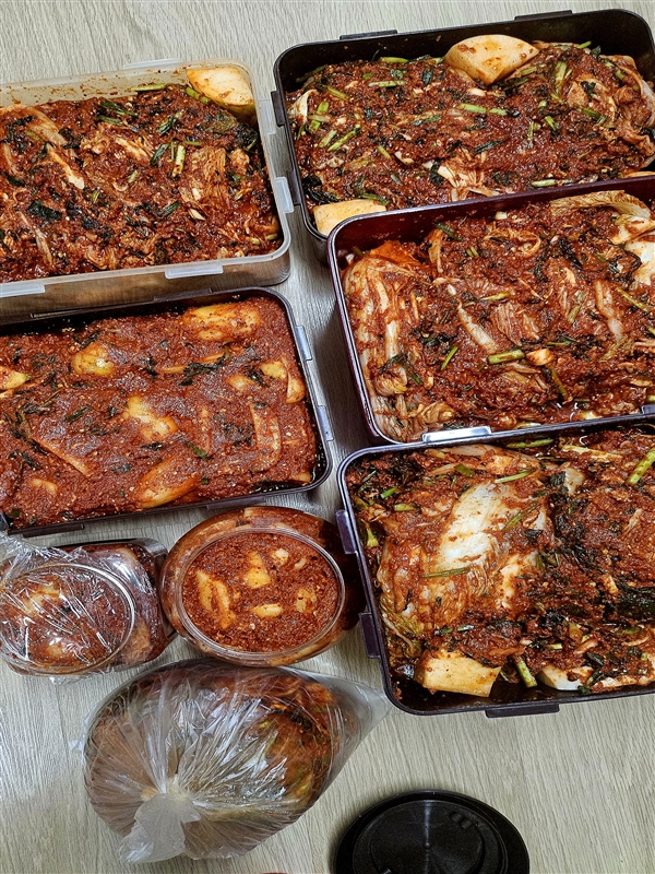 | 1-5. 원재료명 및 함량(농수산물의 원산지 표시에 관한 법률에 따른 원산지 표시 포함) | 고춧가루 (20%), 마늘 (12%), 양파 (6%), 무 (15%), 생강 (1%), 설탕 (3%), 찹쌀풀 (20%). 고추씨앗, 정제수, 젓갈류 |