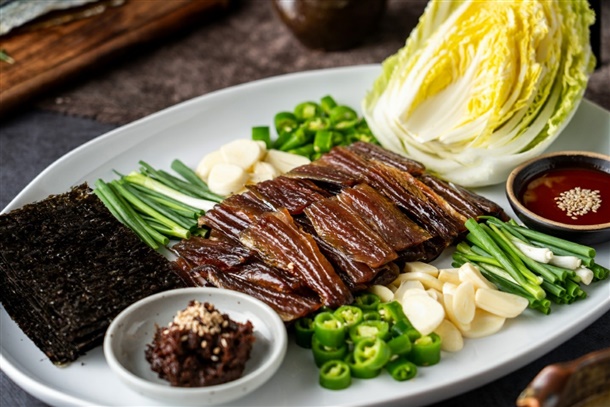 | 1-5. 원재료명 및 함량(농수산물의 원산지 표시에 관한 법률에 따른 원산지 표시 포함) | 원물 - 원양산 대만산 가공 - 포항구룡포 |