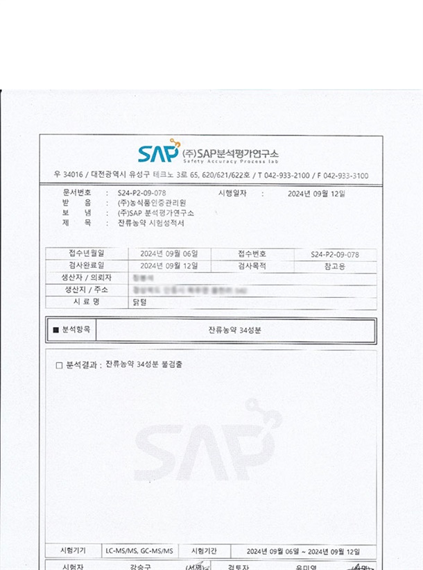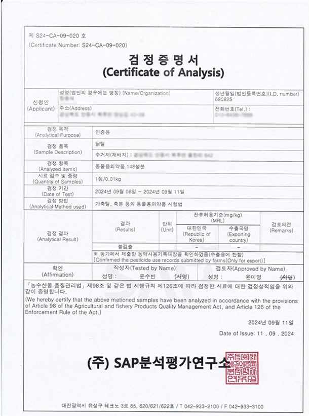 | 식품의 유형 | 산란계(알) |