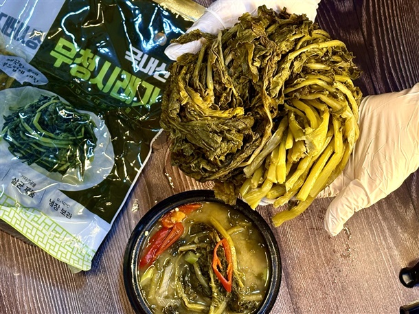 | 1-5. 원재료명 및 함량(농수산물의 원산지 표시에 관한 법률에 따른 원산지 표시 포함) | 국내산 무청시래기 95%,정제수5% |