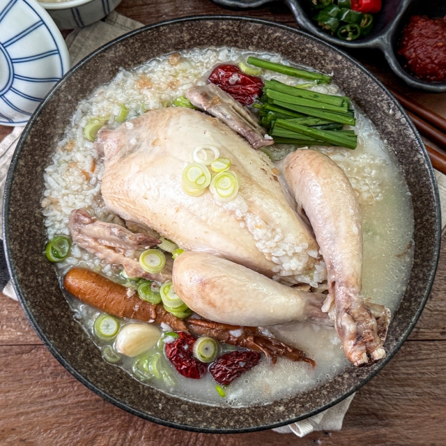 | 1-5. 원재료명 및 함량(농수산물의 원산지 표시에 관한 법률에 따른 원산지 표시 포함) | 닭고기(국내산), 누룽지(국내산), 마늘(국내산), 수삼(고시형/국내산), 대추(국내산), 알리움후커리(국내산), 생강(국내산), 황기(국내산), 찹쌀(국내산), 맴쌀(국내산), 다진마늘, 정제소금, L-글루탐산나트륨, 정제수 |
