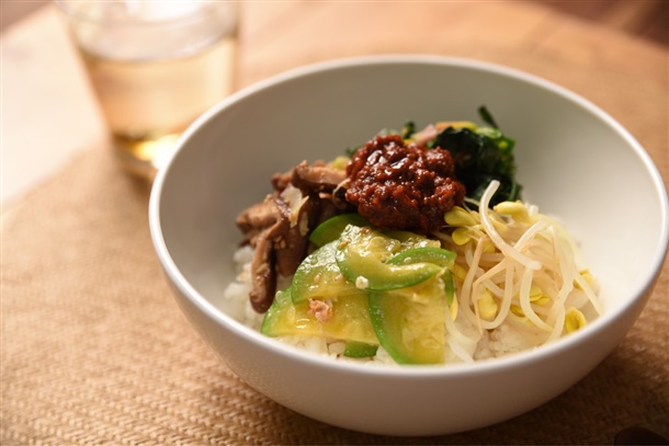 비빔밥에 비비면