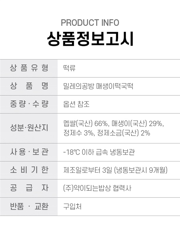 | 제조연월일, 유통기한 또는 품질유지기한 | 제조일로부터3일(냉동보관시 9개월) |